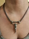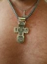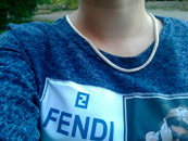 Full-fledged silver chain around the neck.