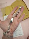 Full-fledged silver chain around the neck.