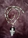 Зображено на хресті: Розп'яття Христове з майбутніми. Свята Трійця. Архангел Михаїл. Святі Воїни. Тихвинська ікона Божої Матері. Православний хрест. Висота: 8 мм